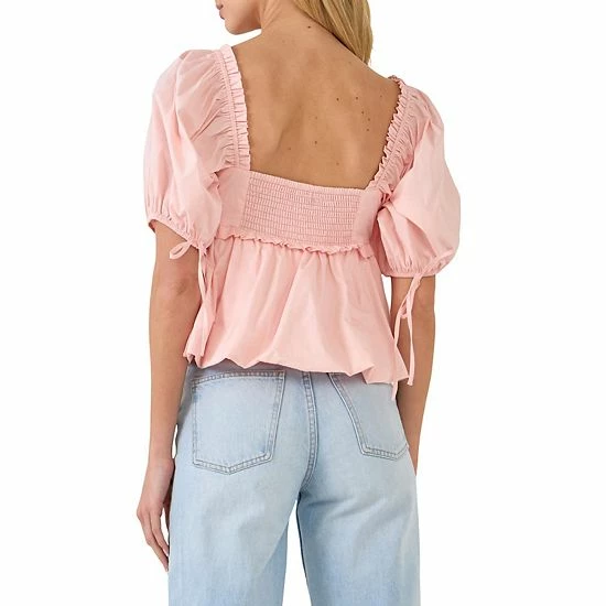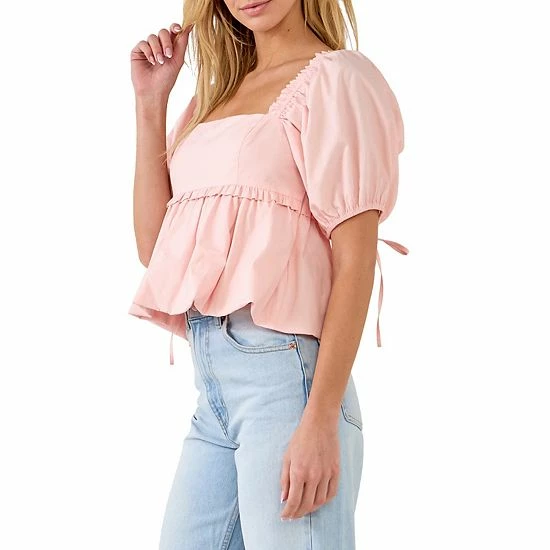 This blouson baby doll top is the epitome of cute and casual. With puff sleeves and partial back smocking it’s perfect for a day spent running errands or a lunch date with friends. The gathered waistline flatters your figure while the lightweight fabric keeps you cool and comfortable all day long. Add a pair of denim shorts and your favorite sneakers for a complete look.