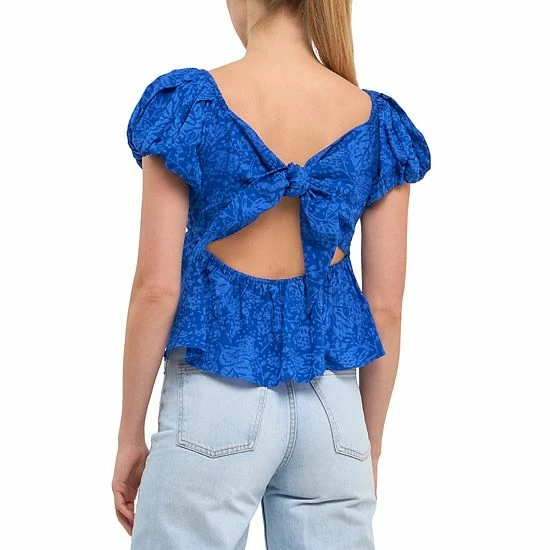 The sweetest way to top off your look. This woven floral top is feminine and sweet with a touch of flirtation. With its short puff sleeves and darling details, this top will have you looking elegant for any occasion. We love the off-shoulder style which gives a peek of skin, while the back tie detail adds just the right touch of intrigue.