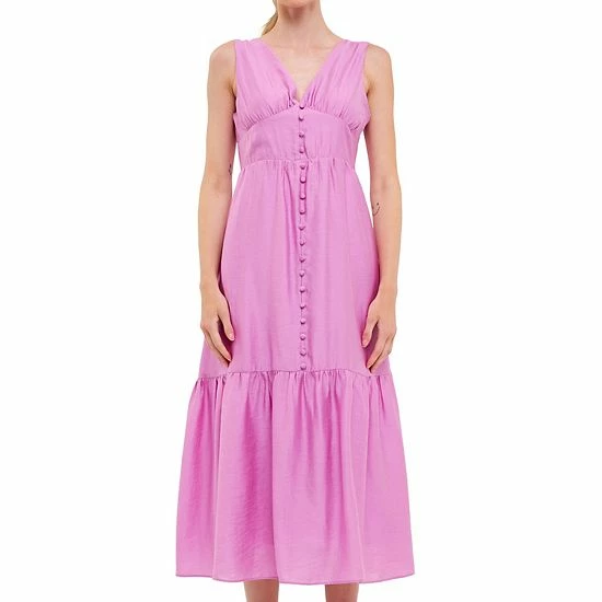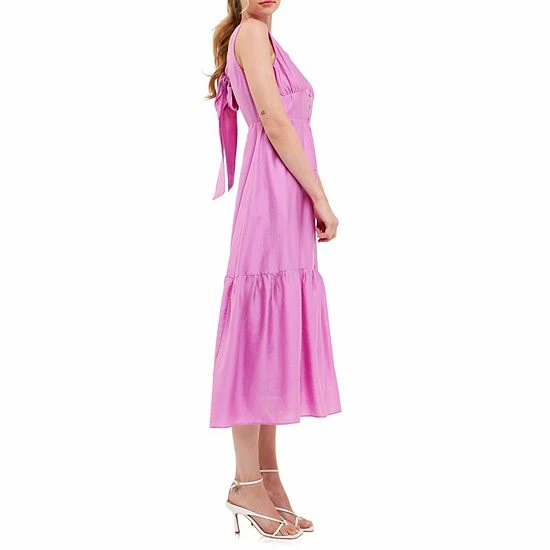 You’ll love this elegant and captivating dress. With a halter neckline and floor length this dress is perfect for any formal occasion. The hidden side pockets add an extra touch of convenience while the functional back bow completes the look. Make a statement at your next formal event with this stunning front button dress.
