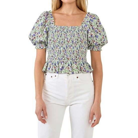 We’re smocking pretty puff sleeves on this floral top for an ultra-feminine look. The smocked bodice is blouson and the silhouette is easy and relaxed. It’s the perfect top to wear on a sunny day.