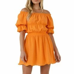 Off the shoulder and smocked detail? We’re in love. The flounced mini dress is both playful and elegant. With a elastic waist band this dress will give you a flattering fit. The half puff sleeves and slight sheer make this dress perfect for a special date or event.
