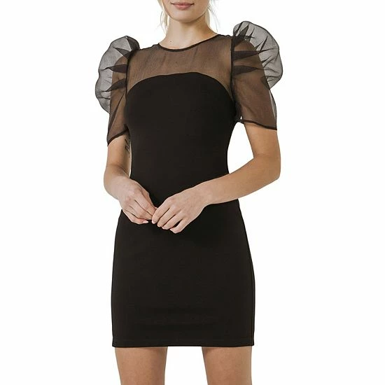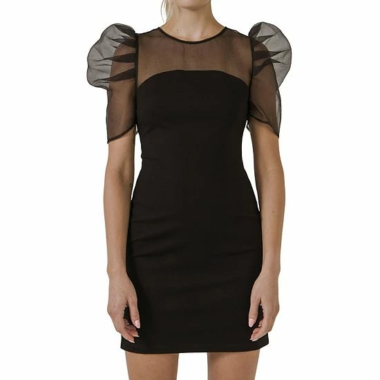 A fresh take on organza this mini dress has a fitted silhouette with round neckline mini length and short sleeves. Made with a knit fabric it is both comfortable and stylish. Whether you are dressing up for a special occasion or dressing down for a day at the office this dress is sure to make a statement.