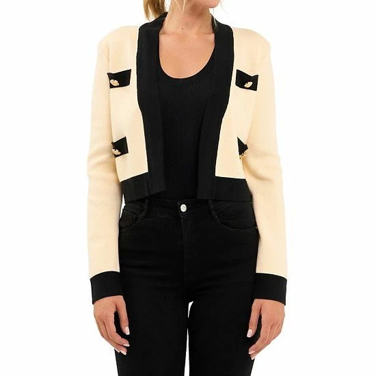 A classic and iconic buttoned cardigan is always in style. The design of this buttoned cardigan is inspired by ornamental buttons with a contrast on the cuffs, neckline, and hemline. Pair this with a matching top and skirt set and you’re set for the day