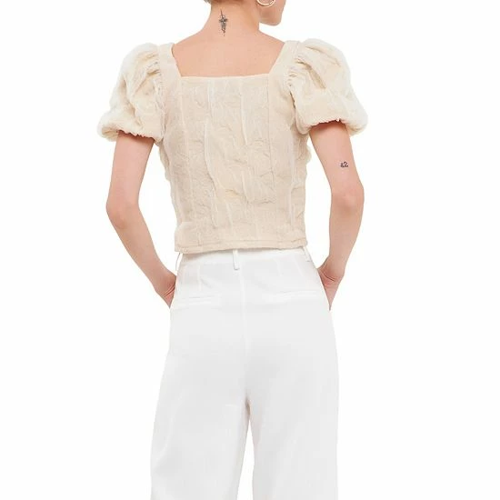 Add a touch of texture to your everyday look. With stretch fabric and pretty details, this top is perfect for any day. The puff sleeves and shirring on the shoulders give it a touch of femininity, while the sweetheart neckline adds a touch of glamor. Dress it up or down-either way, you’ll love how this top makes you feel.