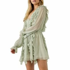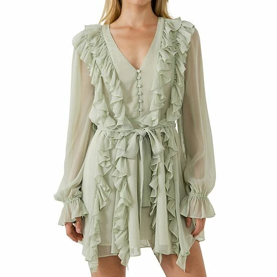 Looking for a dress that’s both stylish and professional? Look no further than our Button Down Ruffle Mini Dress. The ruffles add a touch of femininity, while the long sleeves make it perfect for chilly days. Plus, the sage green hue is perfect for any season.