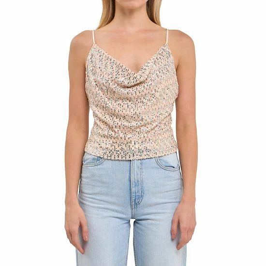 Description: Add some glamor to your look with this Cowl Neck Sequin Top. Whether you’re going out for a night on the town or attending a black-tie event, this top will have you looking your best. The sequin fabric adds a touch of luxury, while the cowl neckline flatters your figure. The back cross tie detail completes the look, giving you a touch of elegance.