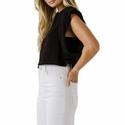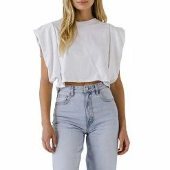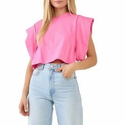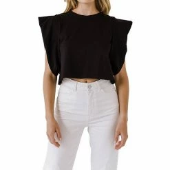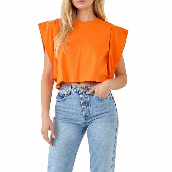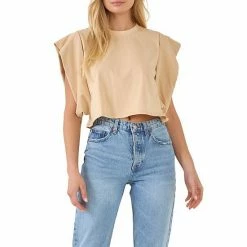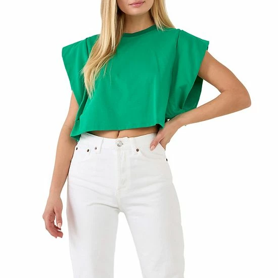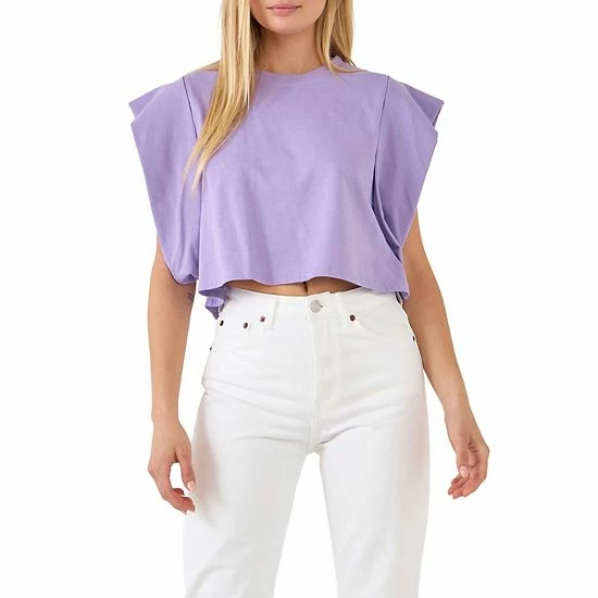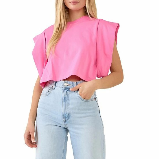 A cute and cropped top for all your warm weather adventures. This top features a round neckline short sleeves and a cropped length. The drop shoulders give this top a relaxed and comfortable fit.