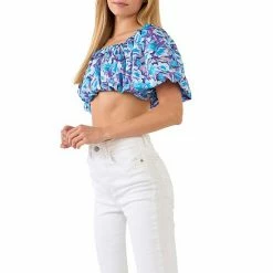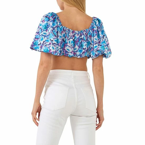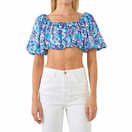 Amp up your everyday style with this pretty floral crop top. With a touch of femininity this crop top is perfect for dressing up or down. The satin effect gives it a luxe feel while the balloon hem and short balloon sleeves add a touch of whimsy. We can’t wait to wear this top all season long. Dress it up with a skirt and heels or keep it casual with jeans and sneakers.