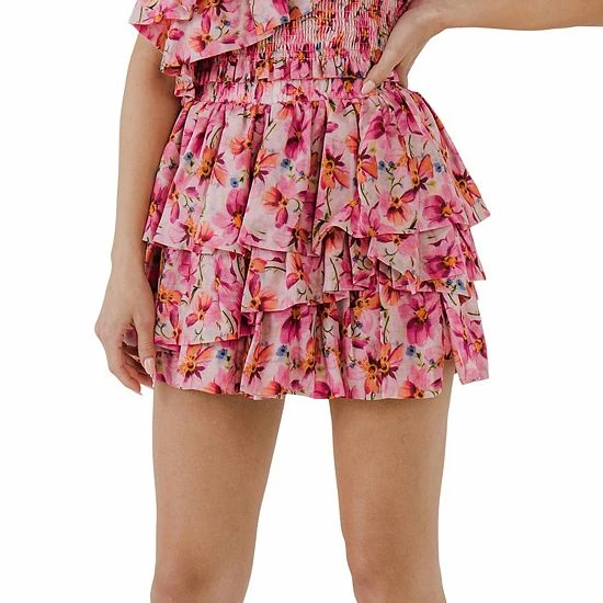 Looking for something sweet and stylish? This mini skirt is perfect! The elasticated waistband ensures a comfortable fit while the pretty floral pattern and multi-tier ruffles add an extra touch of glamour. Made from lightweight linen this skirt is perfect for summer days. Dress it up or down – the possibilities are endless!