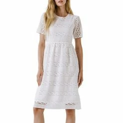 Looking for a stunning dress that’s both timeless and fashionable? Our Lace Midi Dress is perfect for any special occasion. The beautiful lace fabric is soft and romantic, while the short sleeves and shoulder pads give it a touch of vintage charm. The invisible zip at the back ensures a perfect fit, and the shirred waist seam flatters your figure. Whether you’re attending a wedding or a gala, this dress will make you feel like a princess.