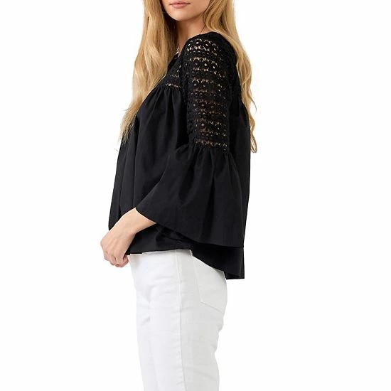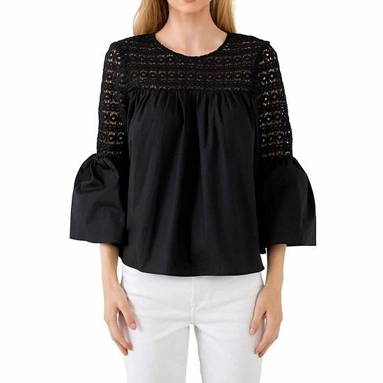 Looking for a blouse that’s both professional and stylish? Look no further than our Lace with Poplin Bell Sleeve Blouse. The lace contrast adds a touch of elegance while the bell sleeves give you a fun and flirty look. And best of all the back keyhole with tie string lets you show off your curves. Whether you’re dressing up for work or going out with friends this blouse is sure to turn heads.