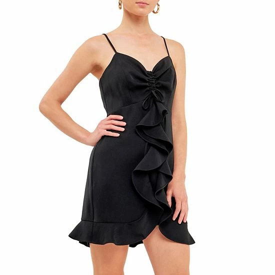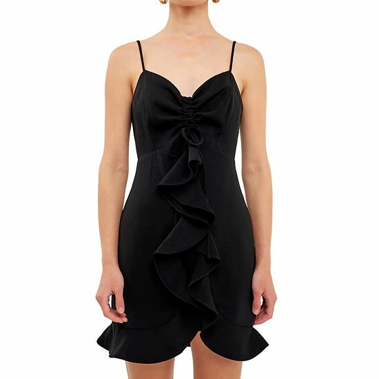 Dress up or dressed down, this little black dress will never disappoint. The Ruffled Mini Dress features a ruffle detail at the hemline and tie detail at the neckline. With its A-line silhouette, this dress is perfect for all occasions. We’re loving this little black dress with strappy heels for a the perfect night out.