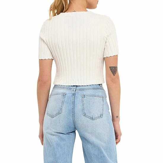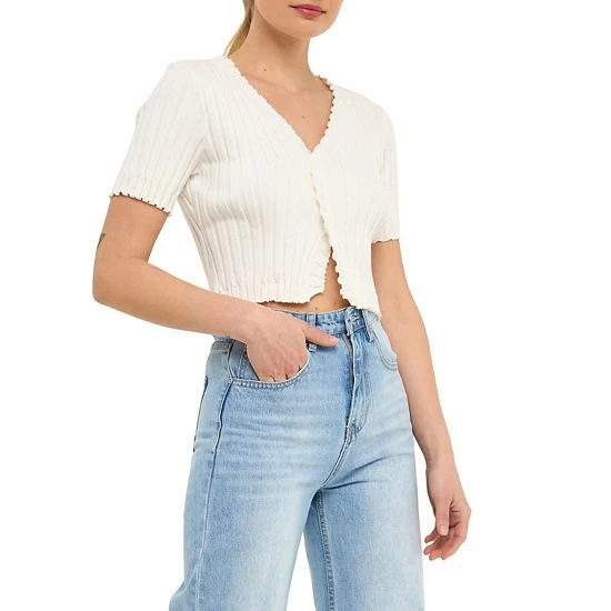 This Short Sleeve Ruffled Knit Top is perfect for a professional yet fun look. The cropped length and short sleeve make it perfect for warmer weather while the ruffle placket adds a touch of personality. The V neckline provides a flattering fit.