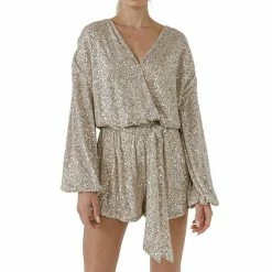 Endlessly chic, this sequin romper is perfect for the party season. Be the centre of attention in this plunging v-neck wrap belted sequin romper. The wrap design with belt at the waist provides the perfect fit. Get ready for a night of glamour and fun with this sexy sequin romper.